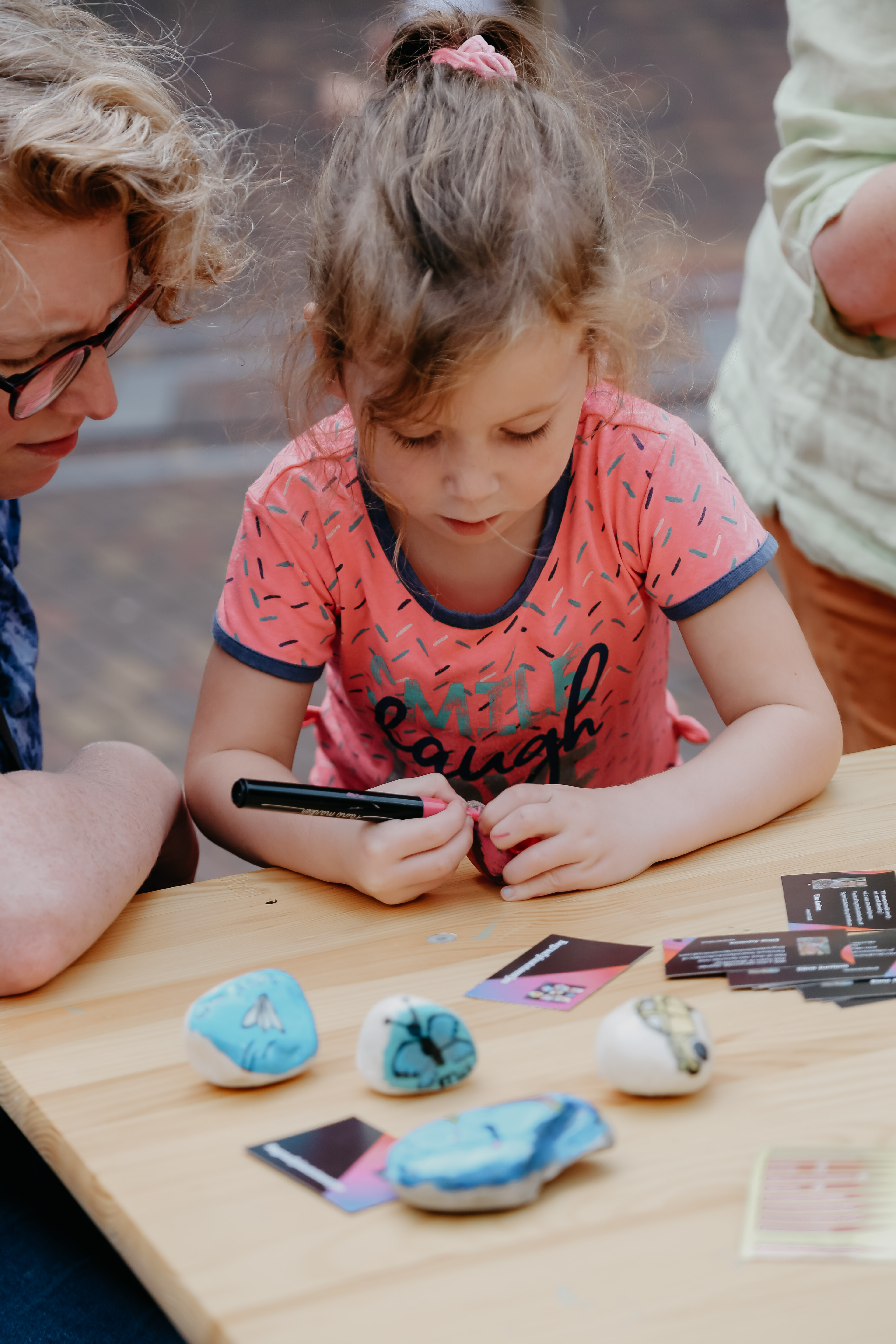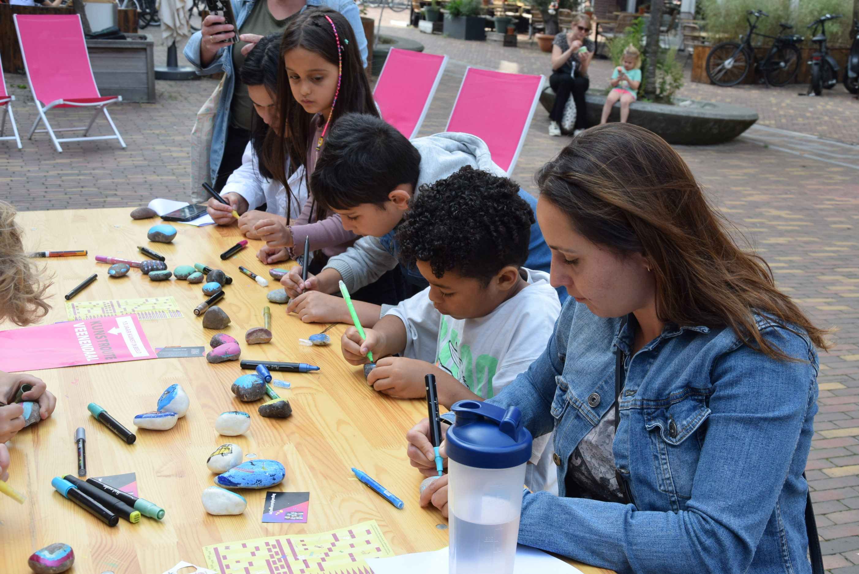 Echte buiten-festivals zijn natuurlijk nog niet toegestaan, maar de aankleding op het Kees Stipplein zag er al zo gezellig uit, dat het zorgde voor veel aanloop van mensen uit de stad. Jong en oud kwamen een kijkje nemen op het plein. Aan de tafels konden kinderen stenen schilderen en al snel droomden de bezoekers ver weg met de verhalen van Sanne Heymann. Eenmaal aangetrokken door de gezellige sfeer op het plein waagden velen een kijkje in de Cultuurfabriek of Spectrum, om daar kennis te maken met andere creatieve activiteiten of te luisteren naar Veense talenten.